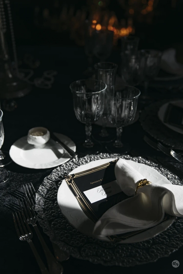 - Свадьба вдохновлена стилем ревущих 1920-х. Динамичность развития этой эпохи отражается в каждой детали свадьбы: в музыке, еде и декоре. На один день особняк Мясникова вернулся в прошлое, в котором тесно переплетаются стиль ар-деко и джаз. Концепцию оформления торжества претворили в жизнь декораторы из Петербурга. Обилие жемчужин, кристаллов, тонкой материи - отражение урбанистического направления эпохи, которое сочеталось с антикварным серебром, канделябрами и золотом парадных залов. Романтическую атмосферу праздника создали живые цветы, - поделилась с «КП-Петербург» организатор свадьбы Екатерина Сафронова.
