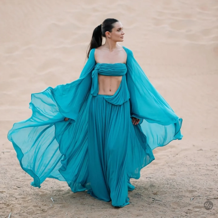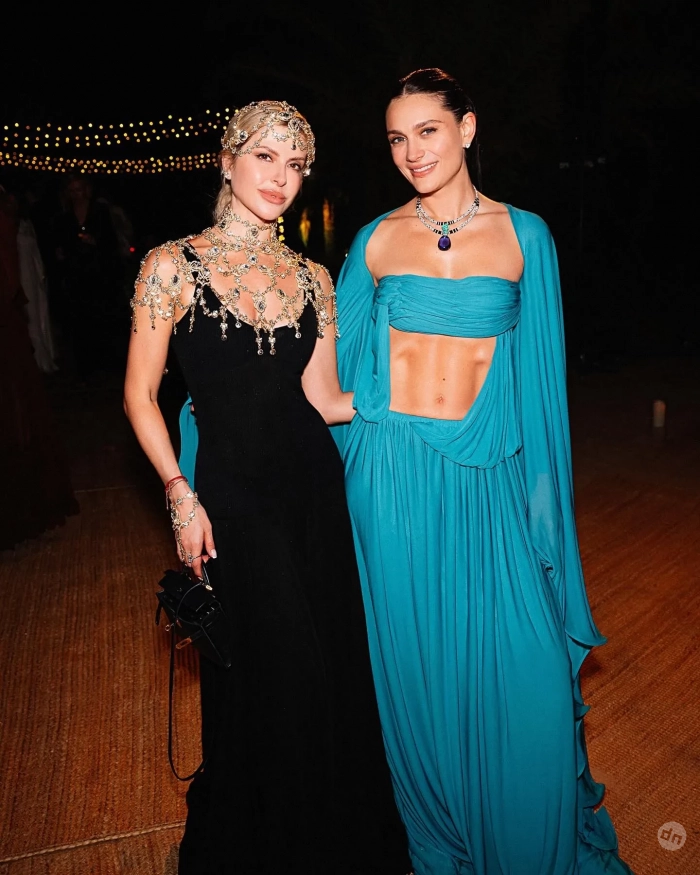 Екатерина ДармаЕкатерина Дарма и Тимур СардаровТимур Сардаров и Екатерина ДармаДля торжества Дарма выбрала наряд в восточном стиле, отсылающий к принцессе Жасмин: она надела голубое струящееся платье-макси с накидными рукавами от Christopher Esber, дополнив образ колье Cartier и минималистичными серьгами. Волосы Екатерина собрала в гладкий хвост, а в макияже сделала акцент на естественную красоту.