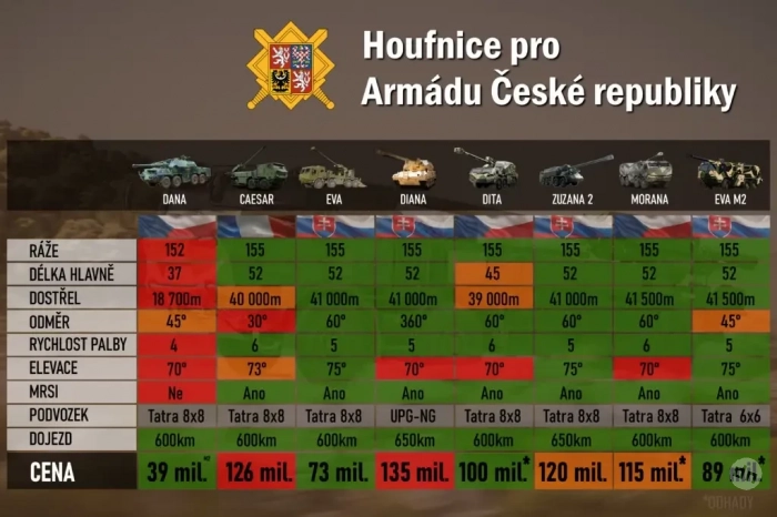 Чешская армия лишилась всего парка буксируемых орудий и советских самоходок, оставив на вооружении около 50 САУ vz.77 DANA. В целях пополнения артиллерии Минобороны страны провело тендер на поставку нового типа САУ.