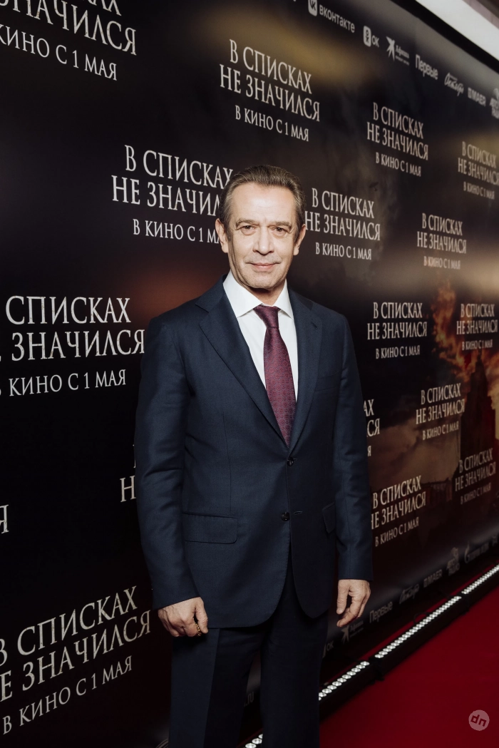 28 апреля в кинотеатре "Каро Октябрь" прошла премьера военной драмы "В списках не значился", приуроченная к 80-летию Великой Победы. Премьеру посетили Владимир Машков, который исполнил одну из главных ролей в картине, Ирина Винер, Николай Расторгуев, Саша Стоун, Тимур Вайнштейн и Яны Батыршина с дочерьми, Женя Малахова, топ-менеджер "Газпром-Медиа" Тина Канделаки и Артём Михалков, получивший недавно должность в холдинге.