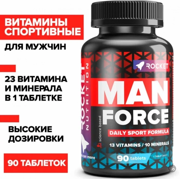 MAN Force от Rocket Nutrition — это полноценная витаминная база из категории топ БАДов для спортсменов, которая работает на всех фронтах: от выносливости и силы до гормонального фона и устойчивости к стрессу. В одной порции — 28 ключевых витаминов и минералов, подобранных с учетом мужской физиологии и активного образа жизни. MAN Force незаменим в период высоких нагрузок, помогает быстрее адаптироваться, сохранять концентрацию, усиливать либидо и улучшать общее самочувствие. Отличный выбор для тех, кто хочет держать организм в тонусе.