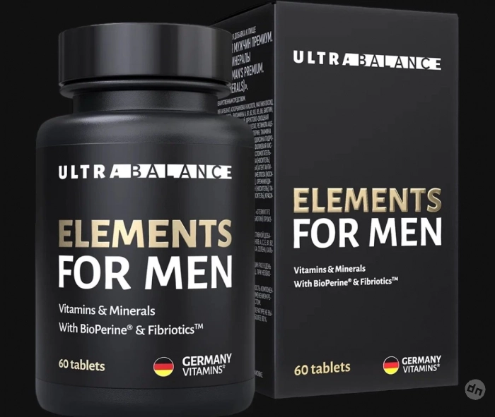 Elements for Men Premium от UltraBalance — это не просто мультивитамины, а комплексный мужской спортпит нового поколения. Формула усилена запатентованными BioPerine и Fibriotics, которые ускоряют усвоение витаминов и заботятся о пищеварении. В составе — весь нужный спектр нутриентов, включая витамины A, D3, B-группу, цинк, магний и ферментированную смесь из 36 суперфудов. Это достойный кандидат в список топ БАДов для спортсменов — для тех, кто работает на износ, но хочет сохранить здоровье, выносливость и ясную голову.