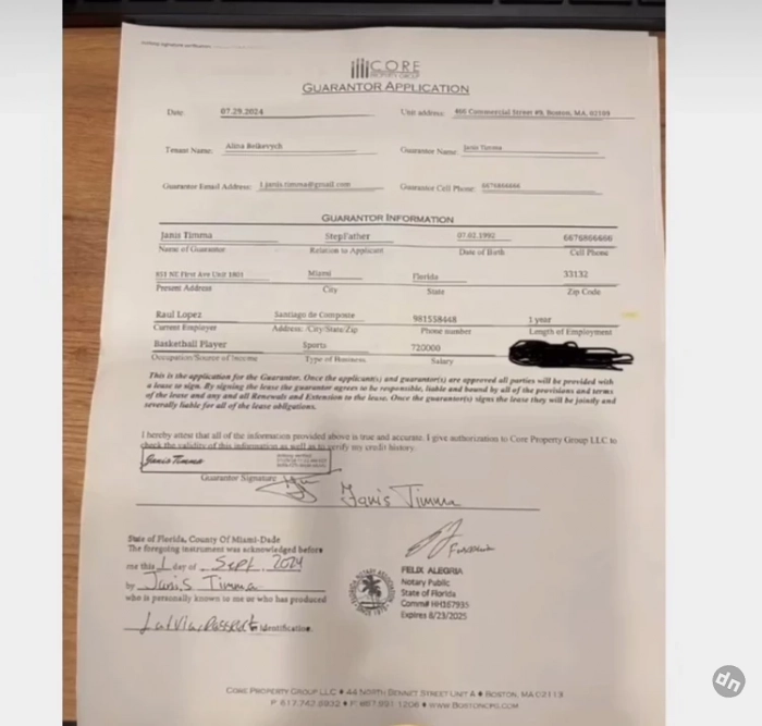 Кроме того, Райтису удалось раздобыть договор годовой аренды апартаментов в Америке для старшей дочери Анны Алины Белькевич, где поручителем и гарантом значился «stepfather Янис Тимма». В этом же документе указана и годовая зарплата Яниса, как баскетболиста, в размере 720 000 долларов (то есть почти по 5 млн рублей в месяц). Отец Яниса попросил обратить внимание на дату составления договора, а именно сентябрь 2024 года. Известно, что в то же время Анна Седокова подала на развод с баскетболистом после четырех лет брака. Райтис уверен, что его сына-«добряка» просто использовали.