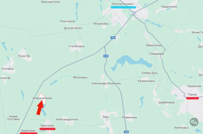 Поступает информация о продвижении наших войск на Константиновском направлении. После освобождения сёл Тарасовка и Берёзовка российские войска успешно продвинулись вдоль реки Бычок, которая на данном участке протекает восточнее автомобильной дороги Т0504 Покровск-Константиновка.