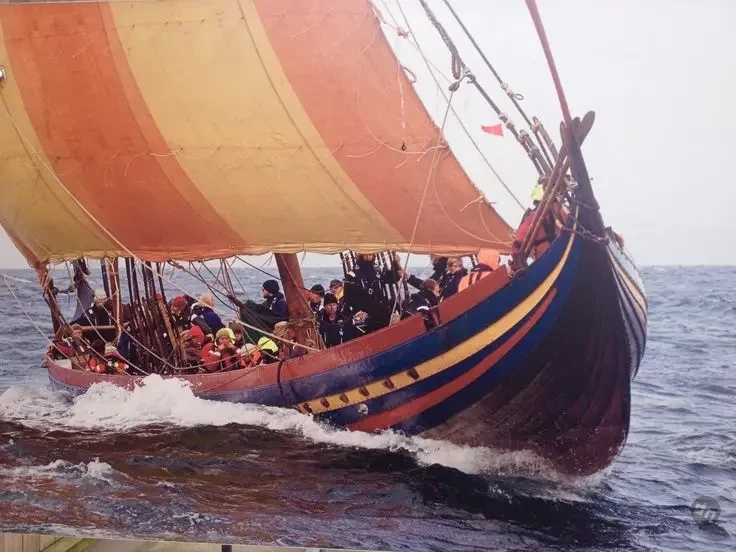 Современная реконструкция корабля викингов средних размеров. В комментах под предыдущей статьей было обсуждение про способность драккара идти под ветром. Этот кораблик, как видно, идет крутым бейдевиндом.