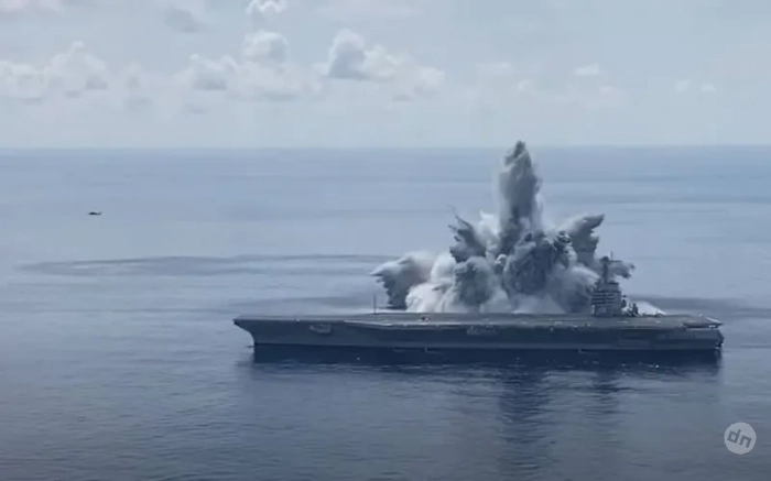 На наших страницах был материал, как летом 2021 года ВМС США совершили своеобразное такое действо: поставили на якорь авианосец «Джеральд Р. Форд» у восточного побережья и подвергли его серии подводных взрывов, кульминацией которых стал взрыв 40 000 фунтов тротила.