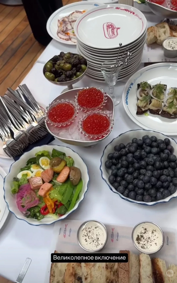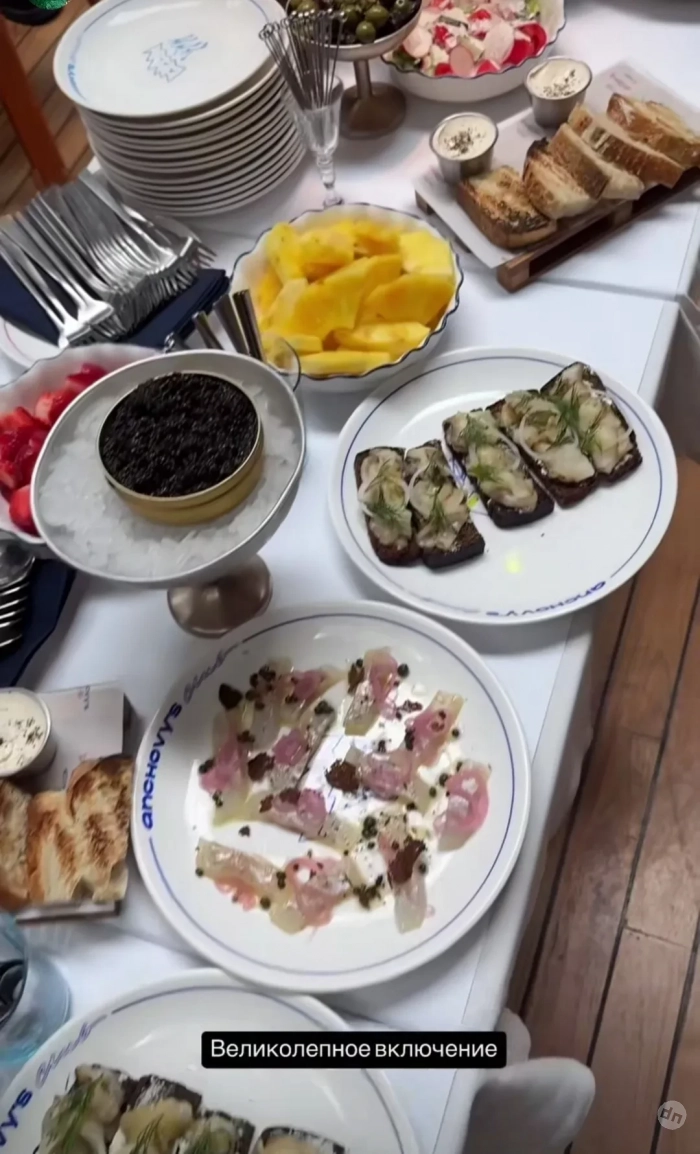 https://t.me/spletnik2006/30059Для гостей блогерша приготовила всевозможные закуски: красную икру, голубику, оливки, различные салаты, брускетты и многое другое. Присутствующие фотографировались на полароид и позже делились получившимися снимками в своих соцсетях.