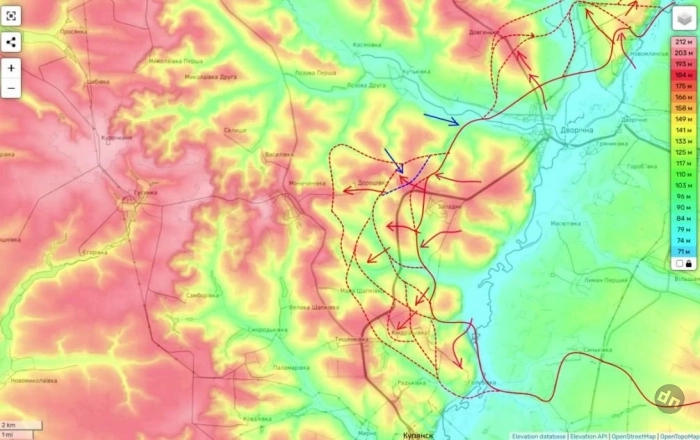 На Купянском направлении российские войска усиливают давление на украинские позиции к западу от реки Оскол, ведя ожесточённые бои за контроль над шоссе Великий Бурлук - Купянск.