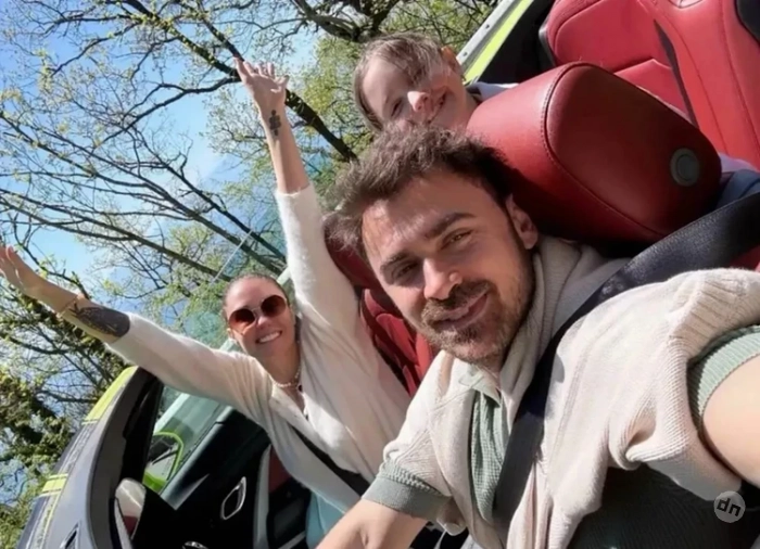 Петр Дранга и Агата Муцениеце с дочкой катаются на арендованной машине по окрестностям Ялты.Фото: Личная страничка героя публикации в соцсети.
