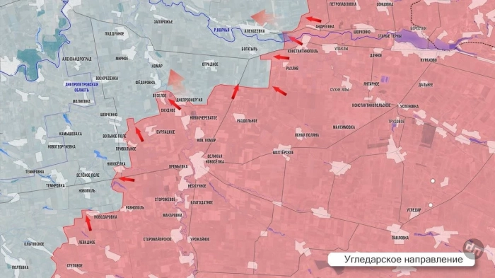 На Угледарском направлении ВС РФ активно продвигаются - вышли к восточным окраинам Новополя и Зелёного Поля, а также взяли несколько позиций восточнее Новодаровки. В районе Фёдоровки наши штурмовики выбили противника с нескольких высот неподалёку. Восточнее сообщают о фактическом выходе наших сил к окраинам Отрадного. В Богатыре продолжается отчаянное сражение. Авиация разбирает укрепления ВСУ в черте села, наши дроноводы бьют по тылам, блокируя подвоз сил противника и боеприпасов.