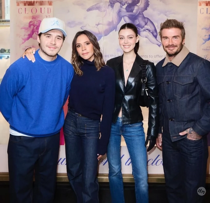Бруклин Бекхэм, Виктория Бекхэм, Никола Пельтц и Дэвид БекхэмНикола Пельтц и Бруклин Бекхэм вместе с 2020 года. Они поженились в 2022 году и официально взяли двойную фамилию Пельтц-Бекхэм.
