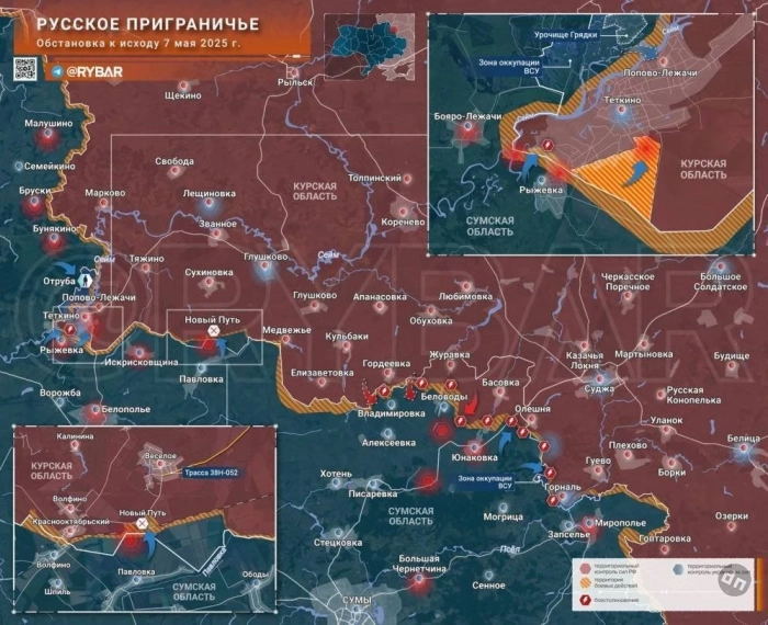 В Курской области продолжаются бои в Глушковском районе: карта боевых действий по состоянию на 08.05.2025