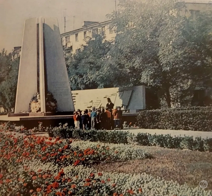 В парке Летчиков у памятника летчикам 230-й Кубанской штурмовой авиационной Краснознаменной ордена Суворова 2-й степени дивизии, павшим в боях Великой Отечественной войны. 70-е гг. ХХ в.