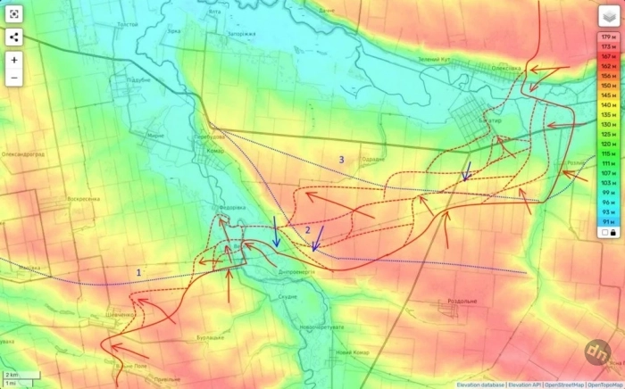 Если идти с запада на восток, то продолжилась зачистка Малиновки. В Новой Полтавке прошли на север метров 300. Также были подвижки севернее Новоеленовки.