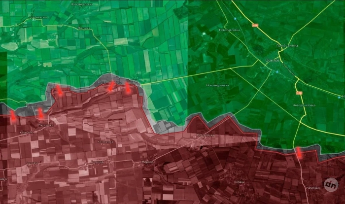 На западном фланге Торецкого направления после освобождения Новооленовки ВС РФ пробились к дороге Константиновка - Мирноград. Продолжались бои на окраине Новой Полтавки. Севернее Сухой Балки наши войска продвинулись вдоль Нелеповки на север и вышли к западным окраинам Леонидовки. Украинская сторона заявляет, что бои продолжаются сегодня в районе Торецка, МО РФ сообщило об атаках со стороны ВСУ в этом районе, пишет Олег Царёв в своём Telegram-канале.