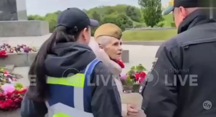 В Киеве полицейские задержали пенсионерку, которая 9 мая пришла возложить цветы в советской пилотке