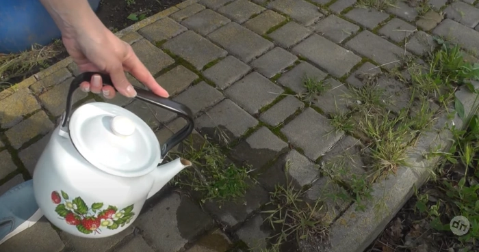 Однако специалисты предлагают куда более безопасный и простой метод, который доступен абсолютно каждому. Всё, что вам нужно, — это… обычный кипяток! Да-да, простой горячий чайник способен сотворить чудо в борьбе с сорной растительностью.
