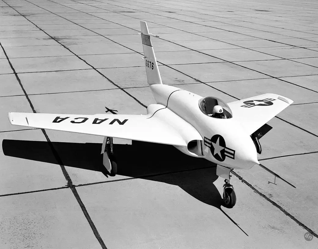 Миниатюрный Northrop X-4. Разработанный для изучения поведения околозвукового воздушного потока, он обнаружил, что конструкция без хвоста не подходит для сверхзвуковых или высоких околозвуковых скоростей. X-4 обеспечивал хороший обзор из кабины и был одним из первых самолетов серии X, оснащенных катапультируемым креслом.