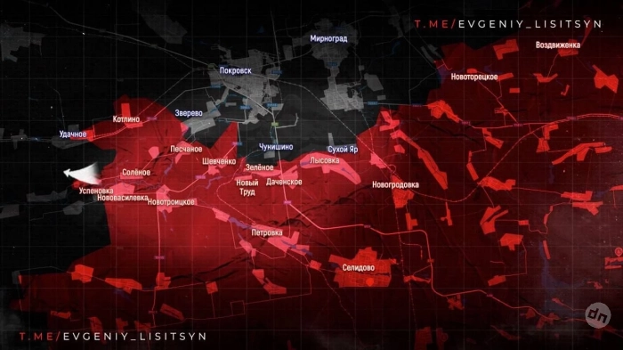 На Покровском направлении продолжаются бои в Удачном и Котлино. До наступления перемирия российские войска смогли закрепиться в Зверево и продвинуться в направлении Перше Травня. Также, российские войска смогли закрепиться в Котляровке. Воспользовавшись режимом прекращения огня ВСУ прорвались в центр Дзержинска на бронетехнике, но осуществить план медийного освещения водружения флага у украинцев не вышло. Техника и личный состав противника уничтожены.