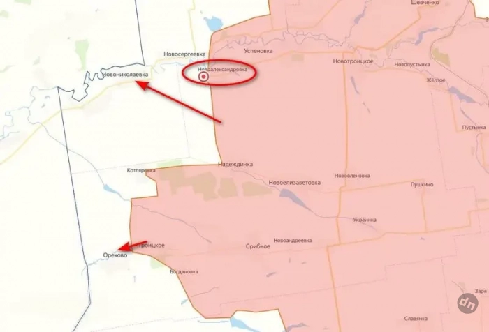 Украинские ресурсы подтверждают продвижение российских войск вдоль реки Соленая к западу от Новоалександровки. Если убрать маты и лозунги, то все сводится к тому, что ВС РФ практически вышли к Днепропетровской области, у ВСУ нет резервов для остановки наступления, вся надежда только на FPV-дроны.