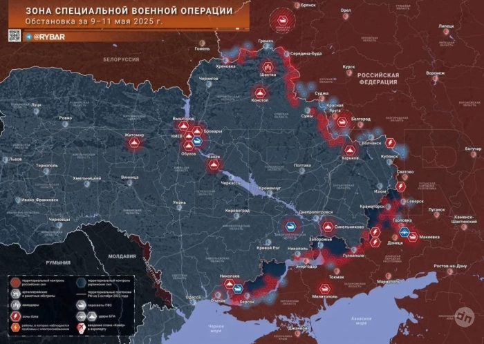 Новая карта боевых действий в зоне СВО на Украине на 12 мая 2025