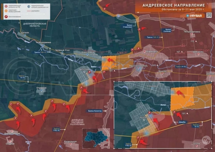На Покровском направлении российские подразделения дошли до окраины Алексеевки. В Котляровке и районе Орехово - встречные бои. А чуть выше по фронту российские бронегруппы провались сразу на полтора километра западнее Новоалександровки вдоль реки Солёная и установили контроль над селом. Российские подразделения также закрыли «карман» южнее Новоалександровки, освободив ещё 9 кв км. По последним данным, наши бойцы продолжили продвигаться на запад, к границе Днепропетровской области, и вышли к южным окраинам Новониколаевки. Севернее, в соседней Новосергеевке, бои кипят в застройке.
