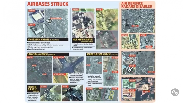 Спутниковые снимки, опубликованные министерством обороны Индии и коммерческими операторами, подтвердили серию точных ударов по восьми ключевым авиабазам Пакистана. Операция была проведена 10 мая, незадолго до достижения сторонами договорённости о прекращении боевых действий, пишет Hindustan Times.