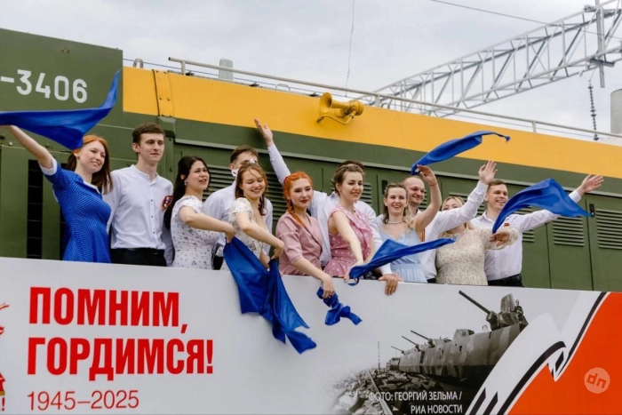 Танцевальные флешмобы с участием местных жителей прошли на вокзалах в дни прибытия в регионы «Поезда Победы» - совместного проекта Юго-Восточной магистрали и Минобороны России, посвященного 80-летию Победы в Великой Отечественной войне.
