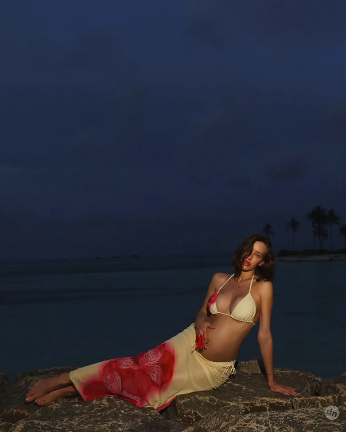 Возлюбленная Тимати, 31-летняя Валентина Иванова, которая ждёт от него ребёнка, продолжает делиться в соцсетях фото и видео со своей изменившейся фигурой. Она опубликовала в инстаграме* кадры с отдыха на Мальдивах, где вновь продемонстрировала свой округлившийся живот.
