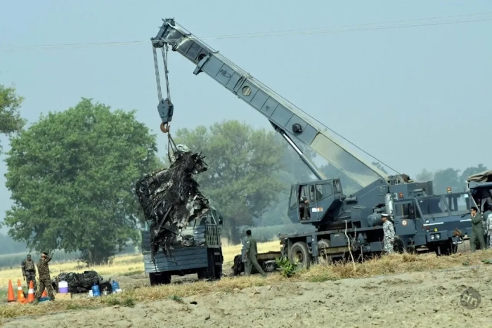 Местные ресурсы распространили фото, на котором запечатлена эвакуация обломков упавшего у селения Акила у Гонианы в округе Батинда в индийском штате Пенджаб Dassault Rafale EH.