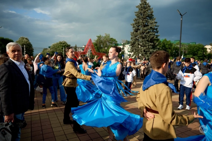 Акция прошла во всех районах Адыгеи, самая масштабная – в столице региона. Мероприятия состоялись при поддержке руководства Республики. Управлениями культуры Муниципальных образований организованы исполнения вальса ведущими танцевальными коллективами республики. Все артисты и зрители танцевали в синем платочке Победы.