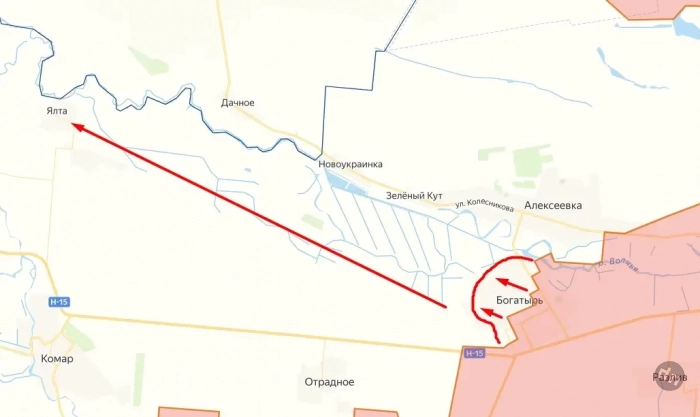 Теперь, когда оборона боевиков в оккупированном ими Богатыре пала, а наши бойцы завершают закрепление в селе, впереди открывается перспектива для броска в направлении сёл Ялта и Запорожье. На этом участке нет других населённых пунктов.