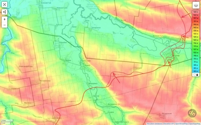 По его информации, в соседней Алексеевке продолжаются ожесточённые бои. Российские войска развивают наступление в сторону села Отрадное и продвигаются к населенному пункту Комар.