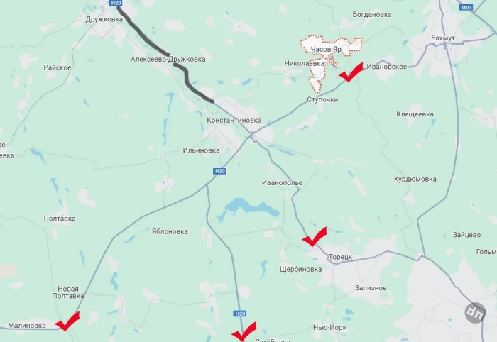 Одновременно с этим российские войска продолжают продвижение к Константиновки сразу с нескольких направлений. После освобождения нашими бойцами Малиновки и расширения зоны контроля на дороге Покровск-Константиновка у противника остаётся существенно меньше логистических возможностей на этих стыкующихся направлениях. На сегодня последним крупным транспортно-логистическим маршрутом для ВСУ в Константиновке и Ч.Яре является дорога Н20, ведущая со стороны Дружковки и Краматорска.
