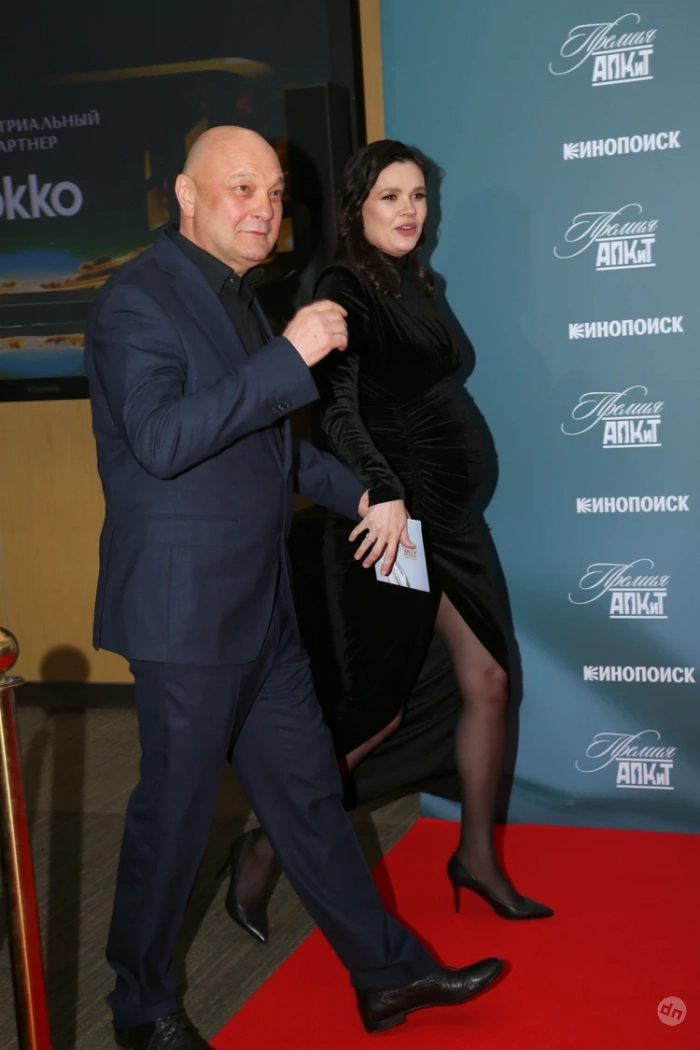 Еще одна счастливая супружеская пара пока только ждет прибавления в семействе. 64-летний режиссер Сергей Гинзбург привел на церемонию 32-летнюю жену – актрису Ольгу Виниченко. Недавно пара объявила о том, что ждет общего ребенка. На красной дорожке Ольга позировала в черном облегающем платье, подчеркнувшем ее животик. Говорят, роды будут уже совсем скоро: в конце июня — начале июля.