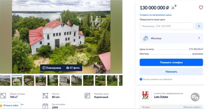 Объявление о продаже дома, который построила Алла Пугачева по своему вкусу — с новой ценой. Фото — сайт cian.ru