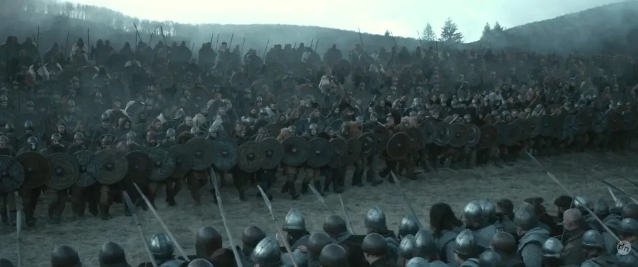 Стена щитов. Кадр из фильма «Семь королей должны умереть». 2023 г.