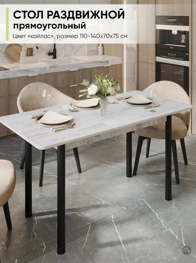 Раздвижной кухонный стол Алиса в цвете Кайлас — оптимальный вариант для тех, кто ценит практичность и стиль. Его компактные габариты (110×70×75 см) легко трансформируются до 140 см, что особенно важно в условиях ограниченного пространства. Надёжный раздвижной механизм и регулируемые по высоте хромированные опоры выделяют эту модель в рейтинге мебели для кухни, обеспечивая удобство и долговечность. ЛДСП с плотной кромкой ПВХ гарантирует износостойкость, а простая сборка с понятной инструкцией позволит быстро привести стол в рабочее состояние.