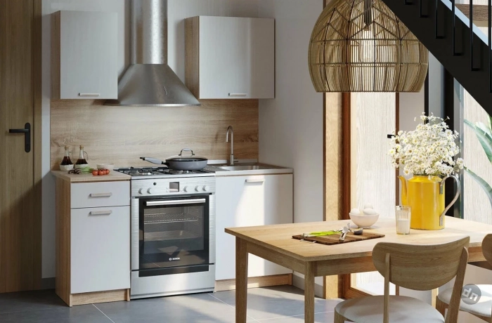 Кухонный гарнитур Ника — это лаконичное решение для небольших помещений, где каждый сантиметр на счету. Его компактность не мешает функциональности: при скромных габаритах он предлагает достаточно мест хранения и гибкость размещения модулей. Благодаря двум оттенкам — дуб сонома и белый — гарнитур впишется в любой интерьер в стиле минимализм. Для тех, кто задумывается, как выбрать мебель для кухни, Ника станет удачным примером сочетания доступной цены, современного дизайна и продуманной эргономики.