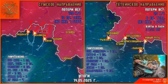 ВСУ перебрасывают новые силы для прорыва границы в Курской области: карта боевых действий по состоянию на 15.05.2025