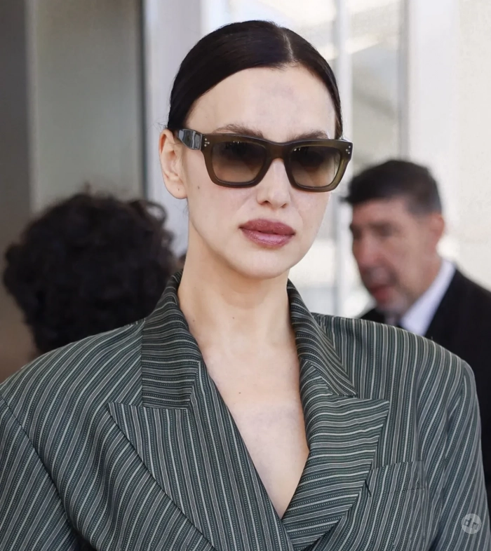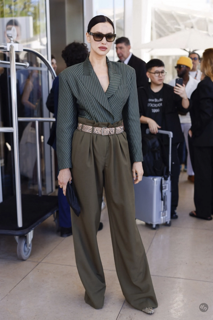 Ирина ШейкИрина ШейкИрина ШейкСегодня утром Шейк засняли в образе в деловом стиле. Она позировала в жакете в полоску, широких брюках и солнцезащитных очках на выходе из отеля Martinez, в котором остановилась.