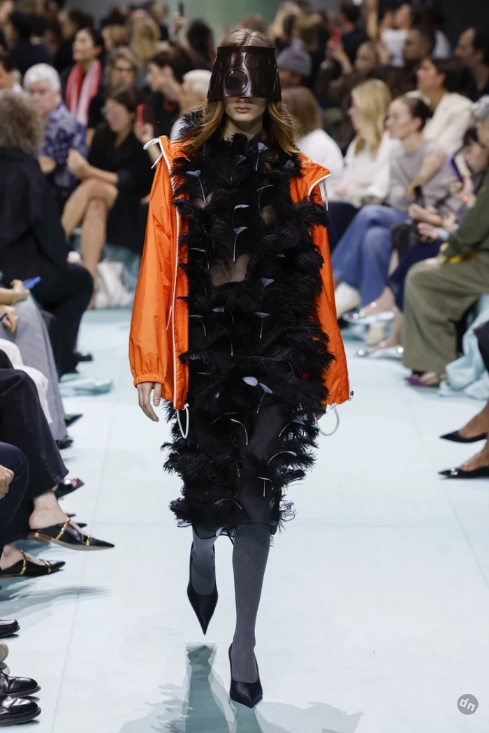 Впрочем, странное сочетание вещей придумала вовсе не Ксения, а дизайнеры модного дома Prada. Платье с перьями и накинутую поверх него оранжевую ветровку они представили в Милане на показе своей новой коллекции весна-лето 2025.