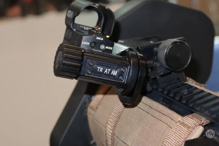 Масса СУО составляет 1,7 кг, включая 6 батареек CR123. Имеется резервный прицел с красной точкой. Если клиент решит не приобретать СУО, то он может воспользоваться серией прицелов E-Ivision, которые не оснащены тепловизором и доступны в различных конфигурациях. Вес оружия составляет 5,8 кг с резервным прицелом и без СУО, длина – менее 1 метра.