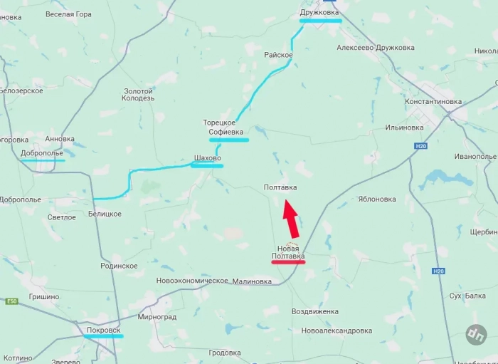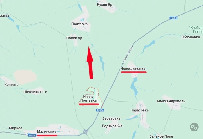 Сейчас бои идут по линии Полтавка – Попов Яр. Эти села находятся неподалёку друг от друга, восточнее дороги на Дружковку и Краматорск. От Полтавки до этой дороги около 7 км. И если темпы наступления ВС РФ на этом участке фронта сохранятся, то противник уже на следующей неделе может лишиться возможности использовать кратчайший маршрут между Покровском и упомянутой Дружковкой – через Шахово (Октябрьское) и Софиевку. И останется для ВСУ единственная коммуникация между упомянутыми городами – через Доброполье.