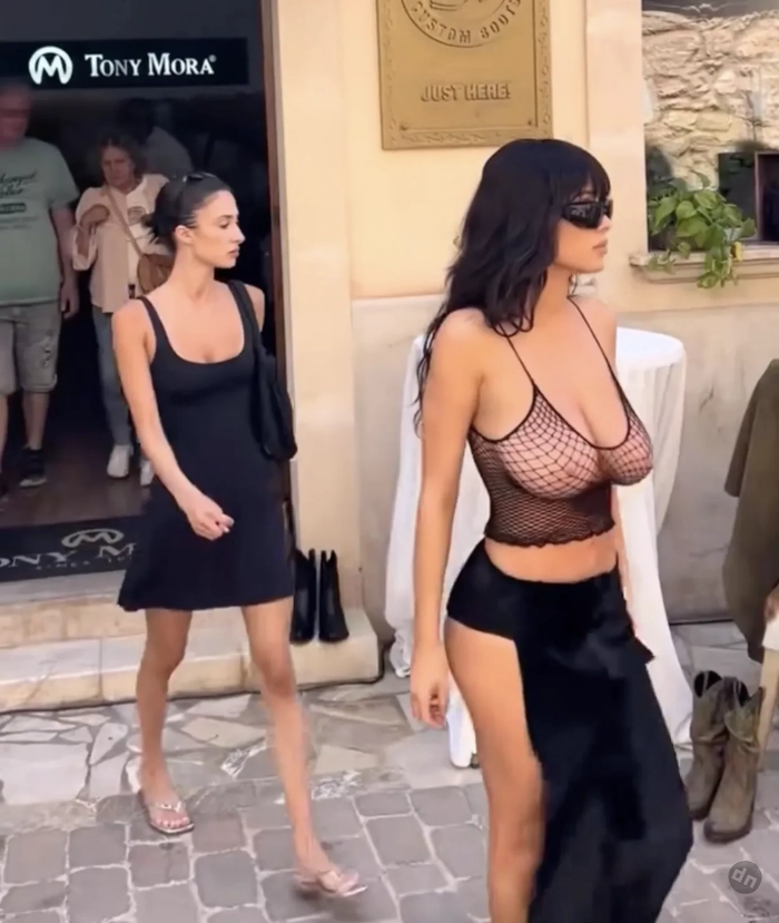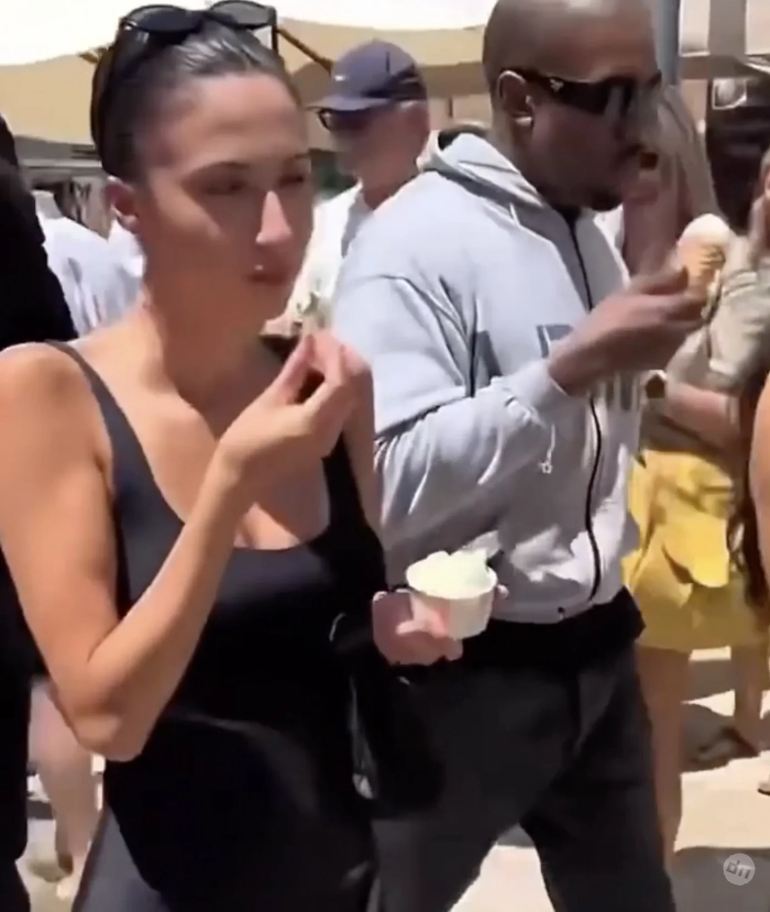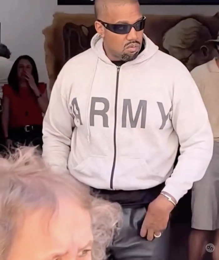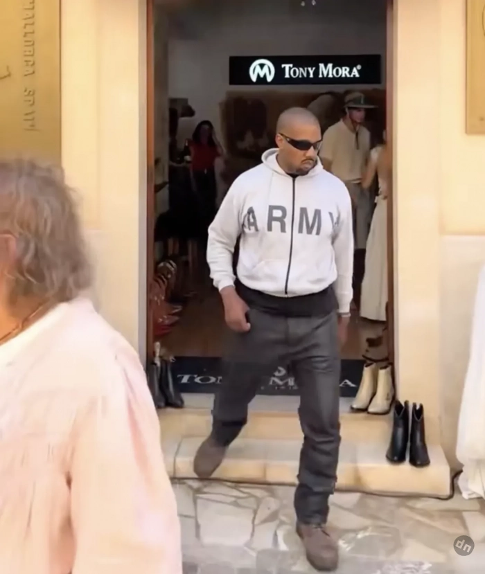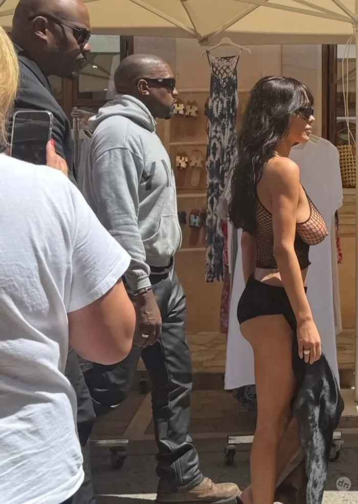30-летняя супруга рэпера, как и всегда, появилась на публике полуобнажённой. Она была одета в топ-сетку и микрошорты с длинным подолом спереди. 20-летняя сестра Бьянки, которая иногда копирует её образы, надела чёрное мини-платье, а Канье гулял в толстовке с надписью Army ("Армия") и кожаных брюках. Компания посетила магазин ковбойской обуви Tony Mora, а после отправилась за мороженым.
