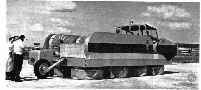Для справки: в 1959 году британец Кокерелл на судне SR-N1 на воздушной подушке впервые пересек Ла-Манш. Это оказалось очень хорошей рекламой для многообещающей технологии, и энтузиасты по всему миру принялись строить аппараты, опирающиеся на воздушный поток. Жан Бертен к тому времени доводил до ума свою машину, которая оказалась сугубо экспериментальной, слабо приспособленной даже к реальной эксплуатации. Например, у изделия отсутствовала крытая кабина, а прожорливость силовой установки поражала воображение. Но очень хорошо показала себя система с восемью независимыми фартуками. Управление позволяло менять угол наклона, например, четырех передних в одну сторону, а кормовых – в другую.