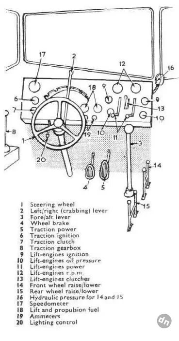 Оператор BC7 мог тонко настраивать работу аппарата. В самых тяжелых условиях машина шла на воздушной подушке, колеса втягивались в арки и лишь направляли машину. На воде они опускались полностью и обеспечивали поступательное движение. Варьируя рычагами в кабине, оператор мог передавать на колеса от 5 до 50 процентов массы машины. Когда воздушная поддержка не требовалась, BC7 полностью переходил на колесный ход. Как уже стало понятно читателю, от изменяемого вектора тяги фартуков под днищем конструкторы отказались – эту функцию на себя взяли колеса.