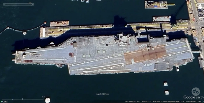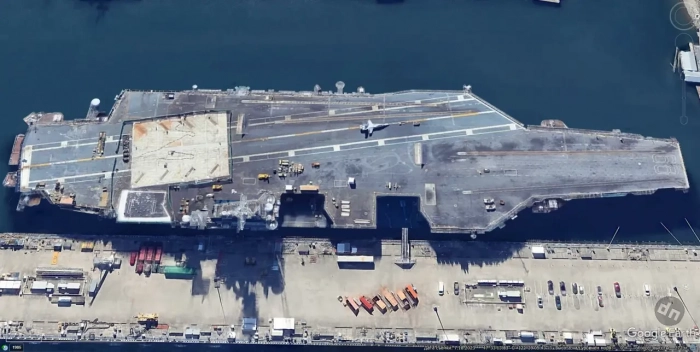 Спутниковый снимок Google Earth: авианосец USS Enterprise (CVN-65) на верфи Newport News Shipbuilding. Снимок сделан в марте 2025 года