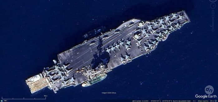 Спутниковый снимок Google Earth: авианосец USS George H. W. Bush (CVN-77) в акватории хорватского порта Сплит. Снимок сделан в ноябре 2022 года