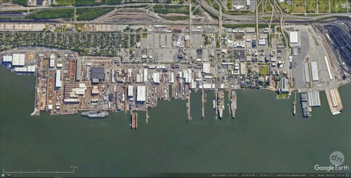 Спутниковый снимок Google Earth: верфи Newport News Shipbuilding